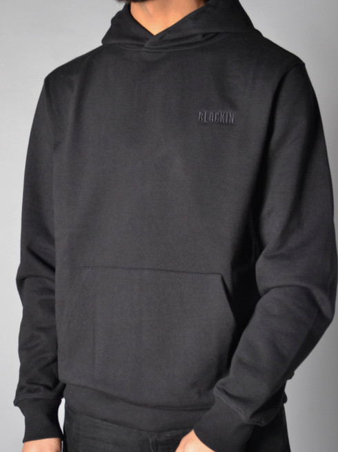 Premium heavyweight hoodie uitgevoerd in zwart, zwart op zwart geborduurd borstlogo. Ontworpen voor dagelijks comfort met een luxe, tijdloze uitstraling.